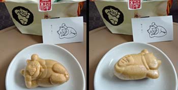 食べてる時はそういう細かいことはわからなかったのですが、手前のやつは餅を餡で包んでいて、黄色のは餡を餅で包んでてこれが一番好き…くらいの感想でした。そうか…味噌餡だったのか…。
