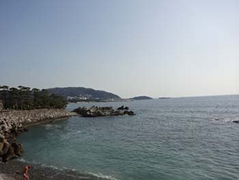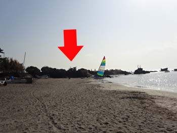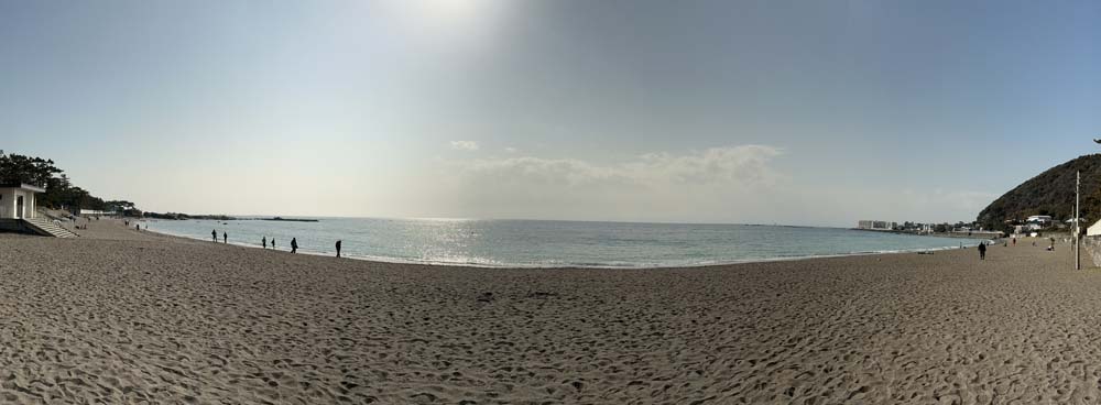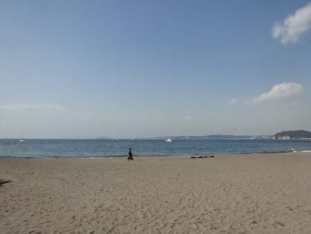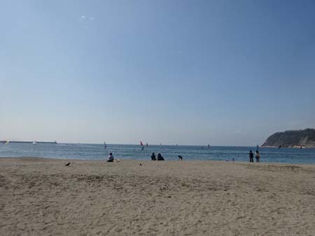 この日は良く晴れて気温も上がっており、砂浜にはビキニ姿(!)でビーチテニスの練習をしている集団がいました。