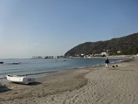 奥に見える岬は左側から逗子マリーナ、その横にちらっと見えているのがずっと逗子海岸から見えている岬です。そして大きく見えているのは三ヶ岡山です。