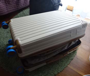 ↑色々使ったので減るハズだったのに行きより何故か膨らんでいる帰りのスーツケース。